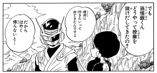 Après avoir capturé les voleurs et les avoir remis à Videl, un lapsus a révélé l'identité du Grand Saiyaman à la fille de Mr. Satan; il n'est autre que le guerrier Gohan !