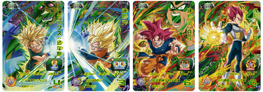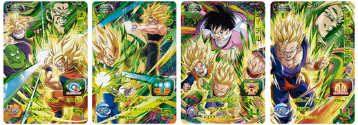 Ces cartes de campagne représentant des guerriers qui ont bravé l'affrontement féroce contre Broly ont été conçues avec des illustrations appariées qui forment une seule image lorsque deux sont alignées côte à côte ! Et pour rester dans le thème, ils sont tous équipés d'une capacité qui les alimente s'il y a un Broly dans l'équipe ennemie !