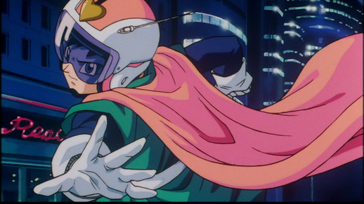 Les deux héros portent leur propre costume unique, le premier comportant une cape rose et un joli casque avec une marque de cœur dessus.