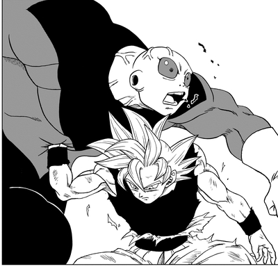Juste au moment où tout semble sans espoir, Goku dépasse ses limites et se transforme en Ultra Instinct -Sign-, ce qui oblige finalement Jiren à commencer à se battre sérieusement. Les choses changent en faveur de Universe 7 lorsque Goku se réveille dans la véritable forme Ultra Instinct et donne un coup de poing incroyable à la section médiane de Jiren.