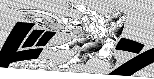 Juste au moment où Jiren est également sur le point de faire sortir Goku de l'arène, Frieza lance un tacle puissant sur le Pride Trooper affaibli qui l'élimine lui et Goku du tournoi.