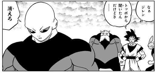 Lorsque Goku essaie de dire bonjour au début du Tournament of Power, Jiren lui dit nonchalamment de se perdre car il ne veut pas gaspiller d'énergie.