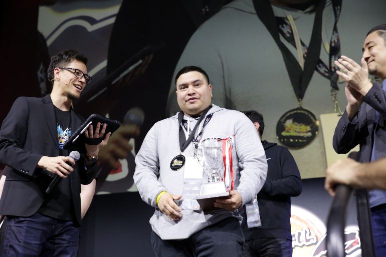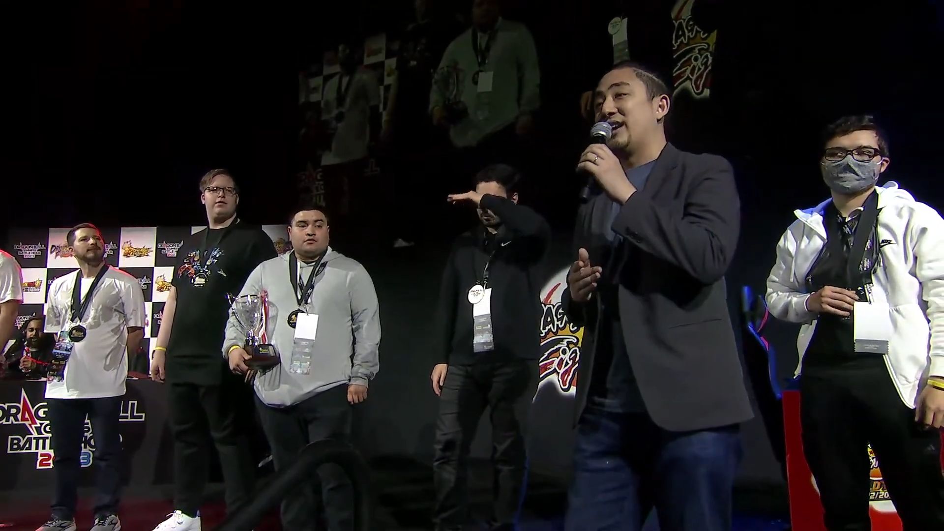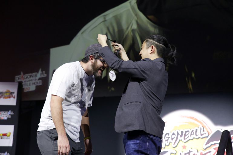 Lors de la cérémonie d'après-match, le producteur de Dragon Ball FighterZ, Tomoki Hiroki, a rejoint les 8 meilleurs concurrents sur scène pour remettre les médailles.