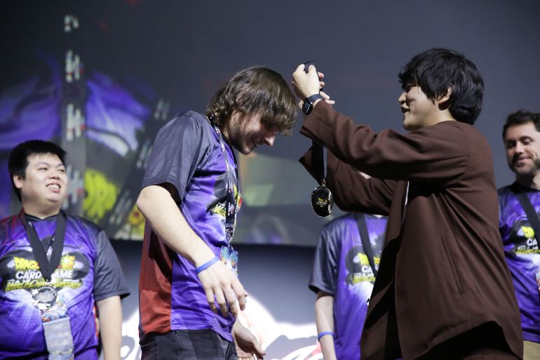 Le producteur de Dragon Ball Super Card Game, Kawashima, a présenté les 8 meilleurs avec leurs médailles lors de la cérémonie de remise des prix.