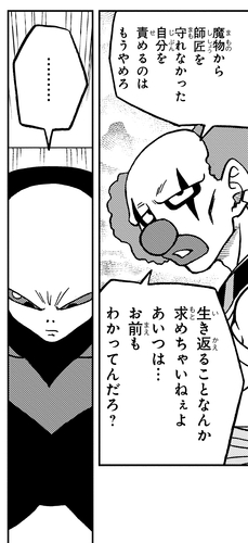 Lorsque la coopération et le travail d'équipe de Goku et de ses alliés ont finalement réussi à renverser la vapeur sur Jiren, Belmod révèle que Gicchin avait toujours essayé de transmettre à son élève l'importance de travailler avec les autres.