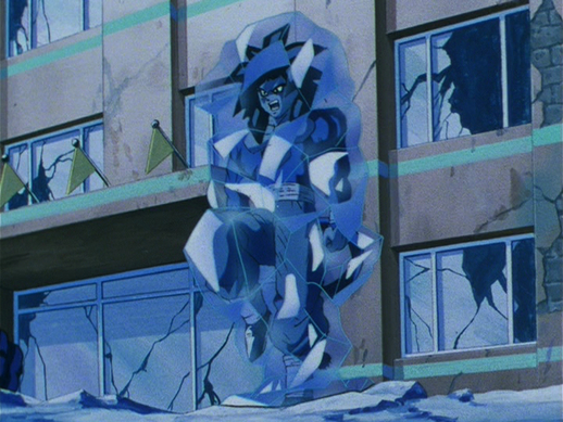 Goku attaque San-Shinron avec une multitude de coups de pied puissants, mais le dragon de glace finit par geler ses deux jambes pour l'arrêter dans son élan avant de continuer à enfermer tout son corps dans la glace.