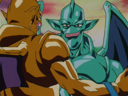 Lorsque Goku est sur le point d'achever San-Shinron pour de bon, il commence à mendier pour sa vie, suppliant : "S'il vous plaît, ne me faites pas de mal !"