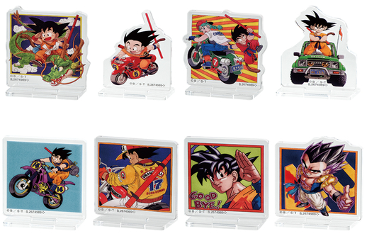 Les illustrations de couverture des volumes originaux de bandes dessinées Dragon Ball ont été ressuscitées sous forme de supports en acrylique, chacun d'eux étant d'env. 50 mm de hauteur ! La gamme comprend huit modèles différents au total.