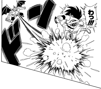 Les choses sont différentes cette fois, cependant, et Goku, maintenant de retour à pleine puissance, porte un coup dévastateur au guerrier du Clan Démon.