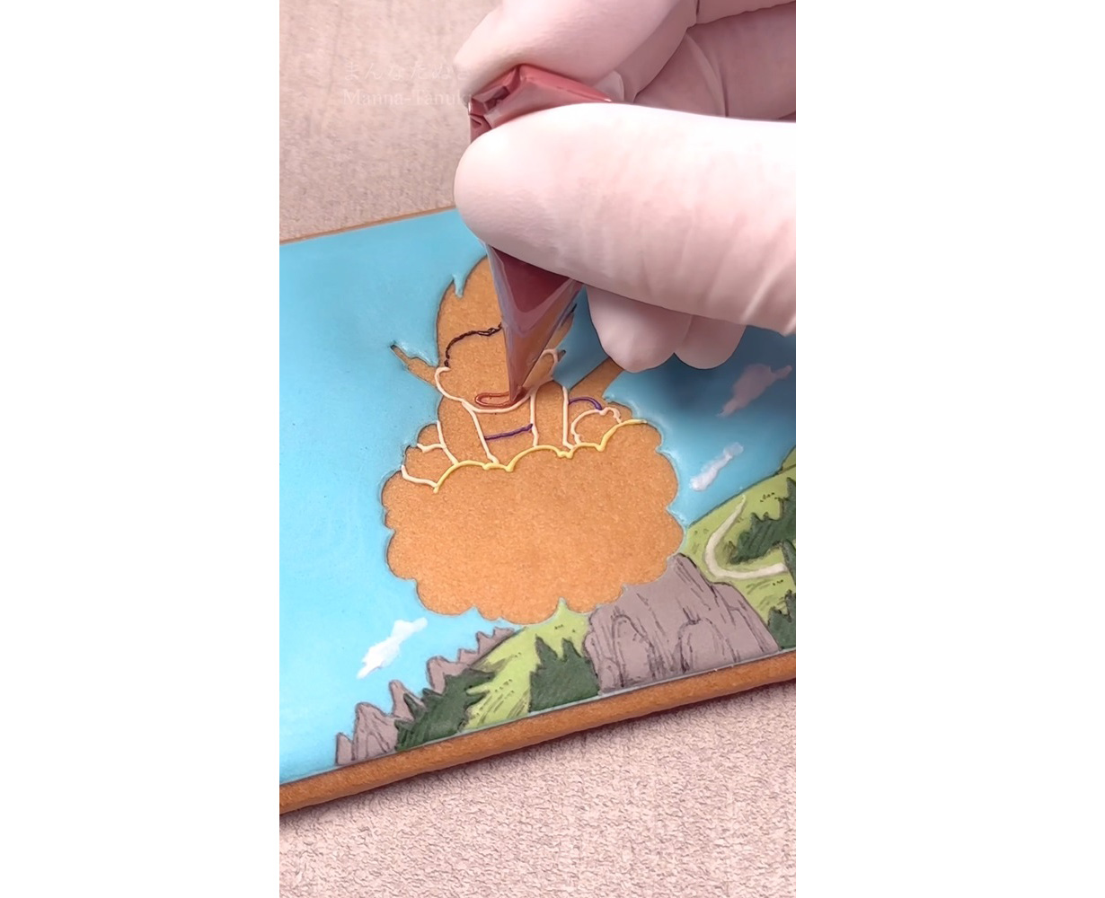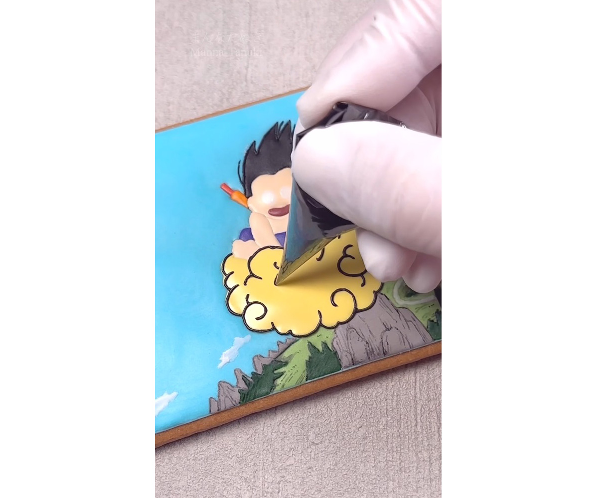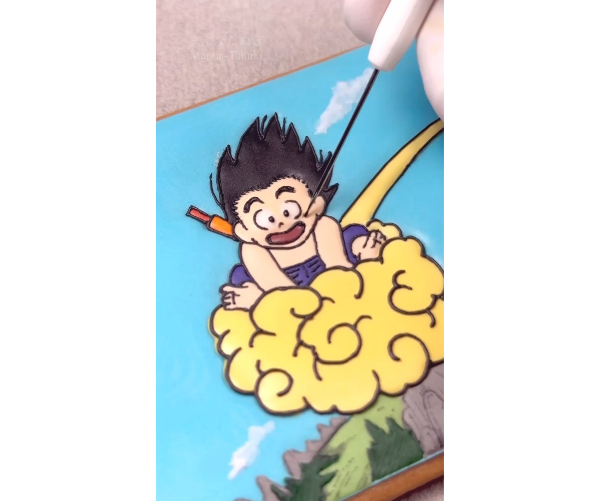 Et il s'avère que Manna-Tanuki est en fait une fan de Dragon Ball , alors quelle meilleure façon de fusionner ses deux passions que de lui faire recréer l'une de ses scènes préférées de Dragon Ball à travers son art de biscuits glacés ?!