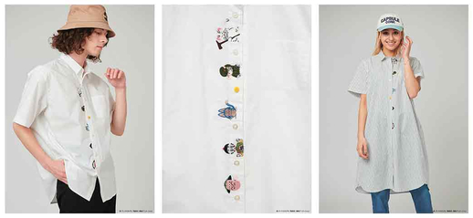 Chemise à manches mi-longues et col ouvert "Motif sur le thème des personnages" (Tailles : S/M/L/XL)
