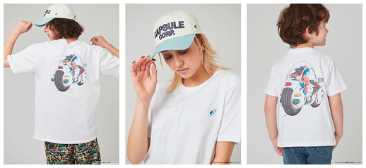 Le dos présente un imprimé élégant de Goku et Bulma sur sa moto, et le devant est agrémenté d'une minuscule Hoipoi Capsule!