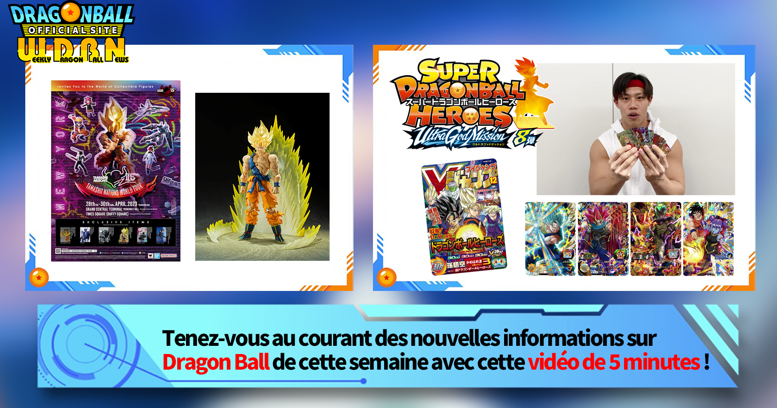 Découvrez les actualités de cette semaine pour le scoop sur Ultra God Mission #8, le nouvel ensemble de cartes qui arrivera dans Super Dragon Ball Heroes le 27 avril au Japon !