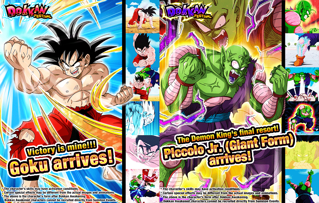 Lors d'un événement, vous affronterez Goku, l'artiste martial qui a passé trois ans à entraîner son corps et son esprit ! Dans l'autre attend Piccolo Jr., le méchant roi démon qui est revenu pour se venger après avoir gardé rancune pendant trois longues années ! Sortez victorieux de ces deux événements pour collecter des médailles d'éveil que vous pourrez utiliser pour éveiller Dokkan les 4 nouveaux personnages SSR qui font leurs débuts dans le Festival Dual Dokkan !