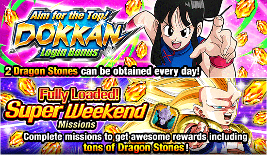 Obtenez 2 pierres de dragon chaque jour grâce au bonus de connexion, accomplissez des missions de super week-end pour gagner des récompenses, y compris jusqu'à 28 pierres de dragon supplémentaires, et effectuez des missions spéciales pour obtenir des "tickets d'invocation spéciale '30'" ! Il y a aussi des tonnes d'événements impressionnants, y compris le retour de "Astonishing Power-Up! Grand Elder Guru's Guidance". Vous pouvez facilement améliorer les compétences de lien dans cet événement, et il est même livré avec de nouvelles missions ! N'attendez pas, connectez-vous à Dragon Ball Z Dokkan Battle et profitez pleinement de tous ces événements Dokkan-tastiques !