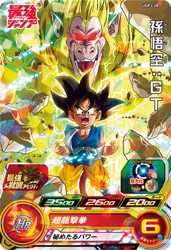 La carte bonus fournie avec ce numéro est le super puissant Goku : GT ! Tout d'abord, cette carte a la capacité spéciale "Saikyo Awakening Ability" qui augmente son Ki jusqu'à 100% au début de la bataille ! Son taux d'augmentation du Power Level basé sur la consommation de Ki est également doublé, et il a même une super attaque que vous pouvez activer pour vraiment chauffer les choses !