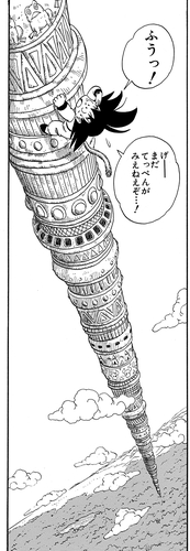 Déterminé à combler la différence de pouvoir entre lui et Taopaipai, Goku escalade la Karin Tower pour obtenir la Super Holy Water, une substance censée pouvoir multiplier le pouvoir de ceux qui la boivent !