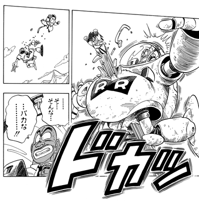 Là, il fait appel à une fille robot nommée Arale Norimaki, qui l'aide à récupérer le Dragon Ball sain et sauf.