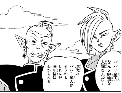 Gowasu procède ensuite à l'utilisation de l' Ring of Time pour visiter la Planet Babari 1000 ans dans le futur. En voyant que les êtres là-bas n'ont toujours pas changé leurs manières violentes, Zamasu prend des mesures et fend un agresseur potentiel en deux.