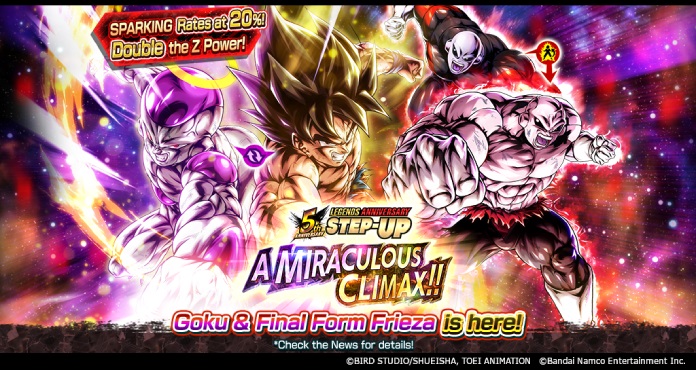 "LEGENDS ANNIVERSARY STEP-UP - A MIRACULOUS CLIMAX !! -" est une invocation incroyable où vous obtenez le double Z Power sur toutes les chutes et le taux de chute du personnage SPARKING est augmenté de 20% à toutes les étapes !