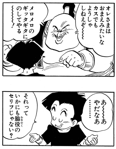 Krillin prend tout cela dans sa foulée, cependant, et répond calmement, "Ces lignes crier 'personnage unique.'"
