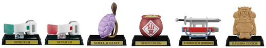 La gamme comprend les objets de collection indispensables suivants : Scouter (Green Ver.), Scouter (Red Ver.), Kamesennin's Shell & Staff, Senzu Bean Pot, Trunks' Sword et Dabura Cookie.