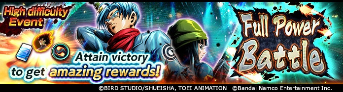 Full Power Battle est une bataille 4 contre 1 stimulante où vous et trois personnages Buddy affrontez un Boss ! Obtenez la puissance Z, les médailles pleine puissance de Goku Black (DBL-EVT-70S) et bien plus encore grâce aux premières récompenses claires de chaque étape ! Full Power Battle a également désigné des personnages bonus de bataille qui obtiennent de puissants buffs, y compris ULTRA Super Saiyan God SS Vegito de l'événement "ULTRA RISING - ULTIMATE GOD-BREAKING FUSION -" ! Améliorez les personnages bonus de combat et les autres personnages les mieux adaptés au combat et dominez cet événement avec votre ami !