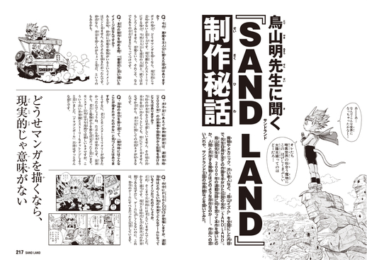Toriyama lui-même raconte tout ce que les fans veulent savoir sur la création du monde de SAND LAND et de ses personnages ! Vous pouvez découvrir à quoi ressemblait la vie de Beezelbub au-delà de ce qui est décrit dans l'histoire, quel genre de pouvoirs incroyables il possède, et plus encore !