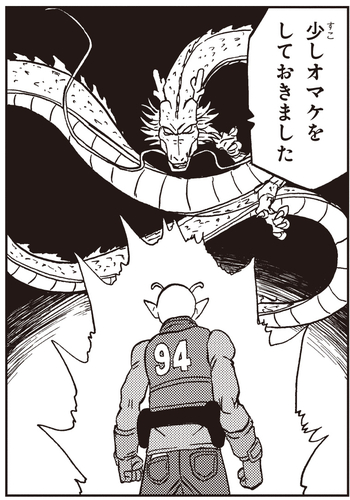 Bien que les Dragon Balls ne soient pas là où il pensait qu'elles seraient, Dende parvient à améliorer Shenron afin que Piccolo puisse utiliser les Dragon Balls pour que le puissant dragon libère son véritable pouvoir ! Il se dirige ensuite vers Capsule Corporation où Bulma avait déjà rassemblé les sept Dragon Balls et fait son vœu. En plus de la mise sous tension, Shenron mentionne quelque chose à propos d'ajouter un petit "extra", mais qu'est-ce que cela pourrait être...?