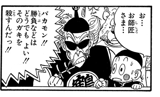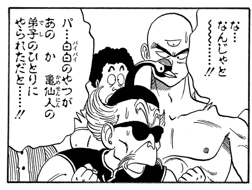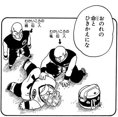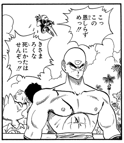 Cependant, Tenshinhan voulait gagner le combat équitablement, ce qui amène un Tsurusennin enragé à dire à son élève : "Tu as oublié ce que tu me dois... pour avoir fait de toi le champion que tu es... !!"