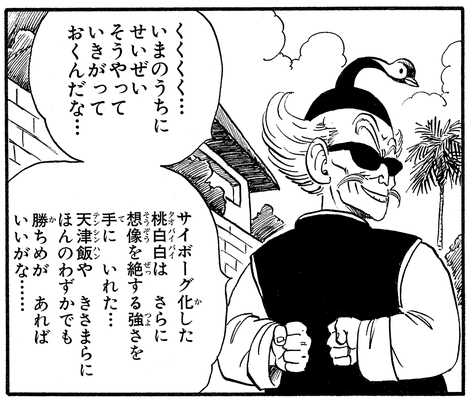Malgré le conseil vantard de Tsurusennin de "courir avant que les maladroits de l'école des tortues ne soient tous cuits dans vos coquilles", Taopaipai subit une défaite écrasante aux mains de Tenshinhan, qui était devenu étonnamment fort.