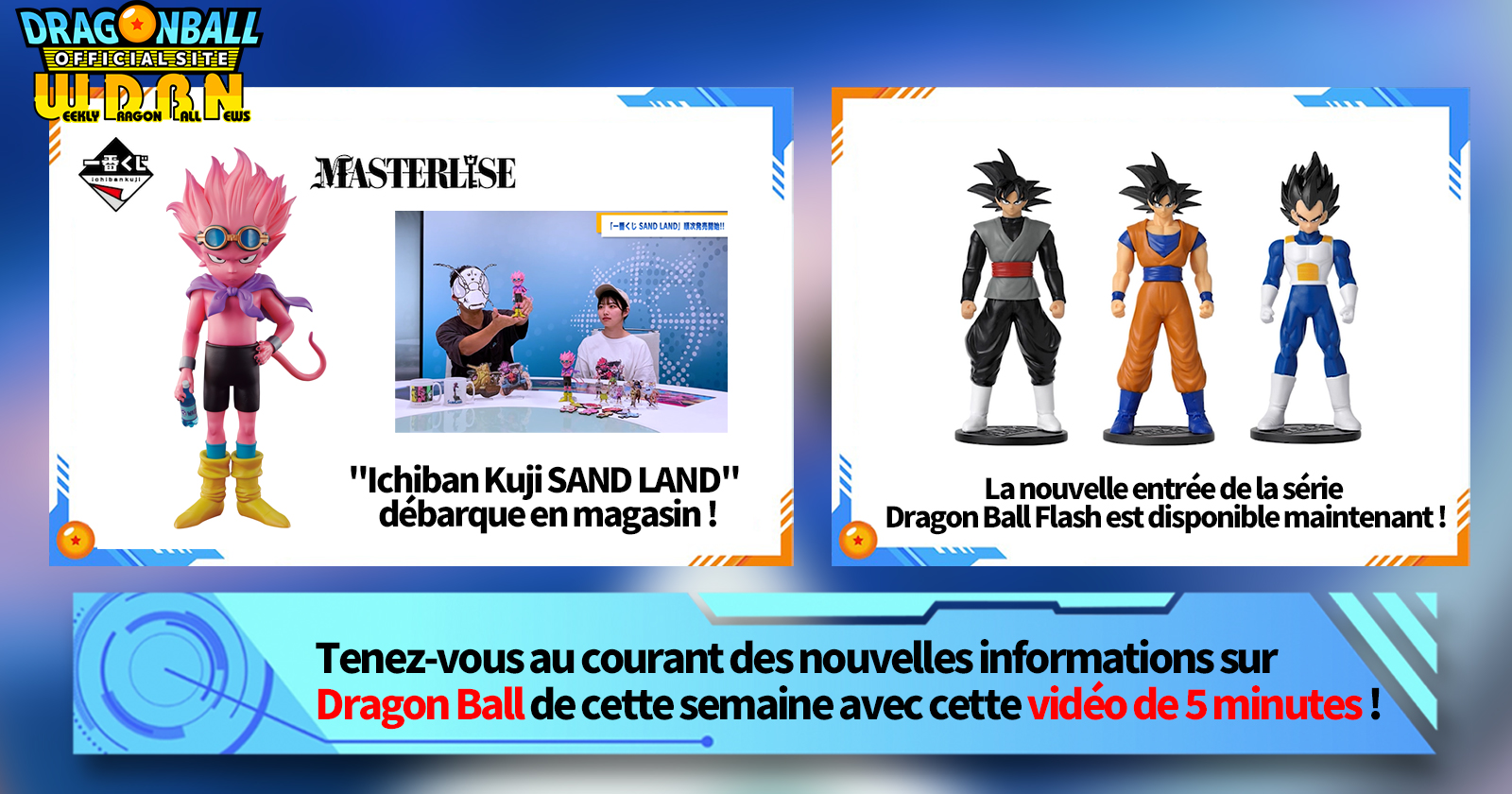 "Nouvelles hebdomadaires Dragon Ball" est une série de vidéos mise à jour tous les lundis (JST) pour vous apporter les dernières nouveautés du monde de Dragon Ball! Rejoignez Victory Uchida, rédacteur en chef de V Jump , qui couvre toutes les informations les plus récentes publiées la semaine précédente ainsi que de nouvelles mises à jour telles que des informations sur les nouveaux produits et les actualités du site pour la semaine à venir !