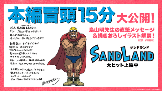 "Merci beaucoup à vous tous, fans incroyables, qui êtes déjà allés voir le film SAND LAND !