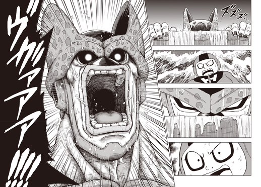 Paniqués, les Gammas et nos héros se précipitent vers le médecin, mais se retrouvent bloqués par Cell Max. Puis, sans être mis en phase par les attaques de Piccolo, Gohan et Gammas, Cell Max se déchaîne.