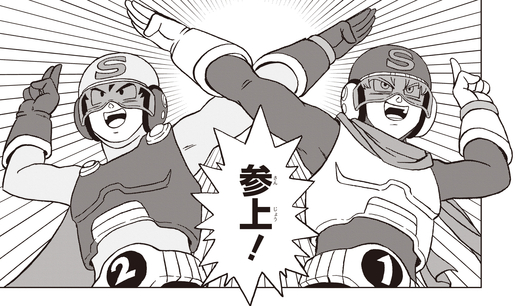 Découvrez l'édition de novembre super-dimensionnée de V Jump pour voir le duo Saiyaman et Gammas unir leurs forces ! Restez à l'écoute pour découvrir ce qui se passe à côté des héros dans l'arc SUPER HERO !