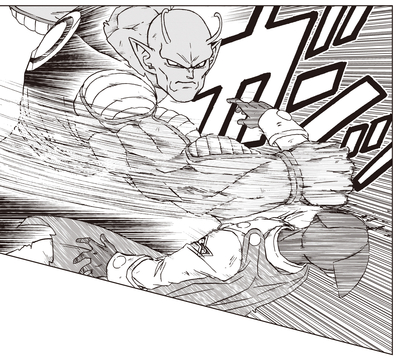 L'imposant Namekian libère alors son nouveau pouvoir dévastateur pour lancer une attaque qui envoie Gamma 2 voler.