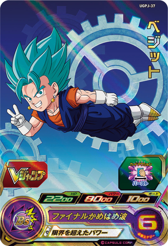 La carte bonus de Super Dragon Ball Heroes cette fois-ci est Vegito! Le puissant guerrier Fusion possède la capacité "Limit-Breaking Power" qui doublera sa puissance et sa garde chaque fois que votre équipe aura un Power Level de 4000 ou plus ! Et de plus, l'illustration de la carte peut être associée aux cartes Ultra God World CP dans Ultra God Mission #10 pour former une illustration plus grande !