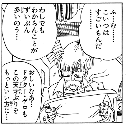 Le Dr. Brief a également pu aider à trouver les points faibles des androïdes en analysant les schémas que Krillin s'est procurés auprès du Dr. Gero's Laboratory. Mais il y avait beaucoup de choses que même lui était incapable de comprendre, ce qui l’amenait à déplorer le gaspillage de potentiel. "Si seulement le Dr. Gero avait utilisé son génie pour de bon…"