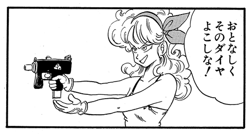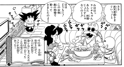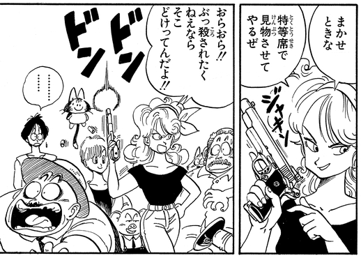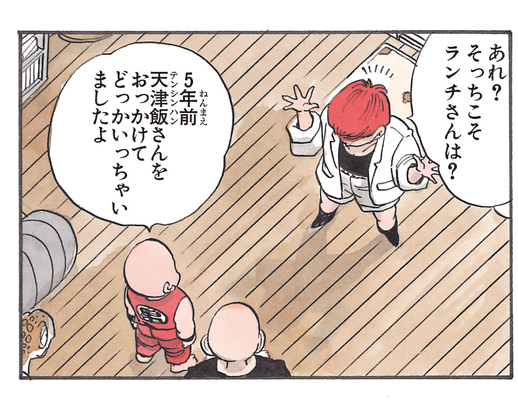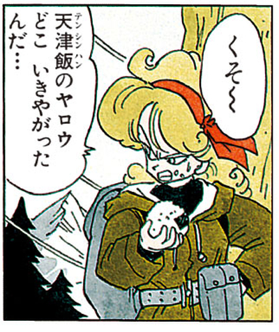 Et même si cela n'apparaît pas dans l'histoire principale, on peut également la voir chercher furieusement Tenshinhan dans une pièce spéciale réalisée pour " Put the Old Year Behind You! Jump Characters Face Off at Short GAG Land " du Weekly Shonen Jump.