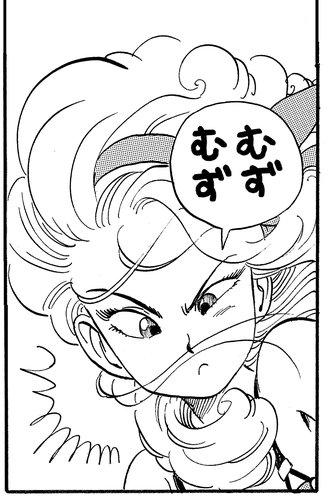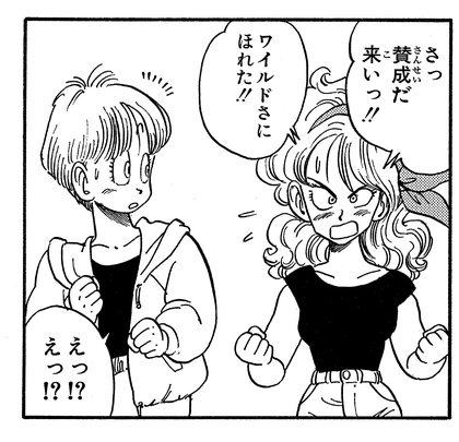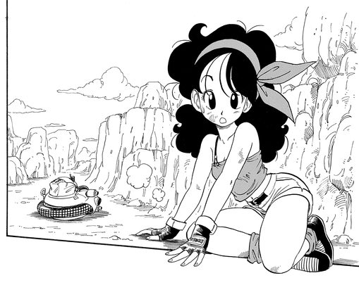 Elle est submergée par l'émotion pendant le combat de Goku et Tenshinhan, la faisant s'exclamer "Je suis tombée amoureuse de votre sauvagerie !!" au combattant désormais réformé du Crane School Dojo .