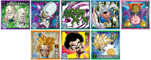 Chacun de ces autocollants montre l'évolution qu'ont subie Gohan et Piccolo jusqu'à leurs apparitions dans Dragon Ball Super: SUPER HERO!