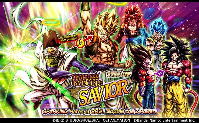LEGENDS STEP-UP - FEARLESS INVINCIBLE SAVIOR - se déroule en deux parties, et la première partie propose des bonus super spéciaux où vous obtenez le double de la quantité de puissance Z et le taux d'apparition des personnages SPARKING est augmenté à 20 % ! De plus, des pièces d'invocation [FEARLESS INVINCIBLE SAVIOR] seront offertes en bonus à chaque invocation dans les deux parties, que vous pourrez apporter à la boutique d'échange pour échanger contre de superbes objets comme Z Power contre LEGENDS LIMITED Pikkon (DBL64-02S) et des billets d'invocation !
