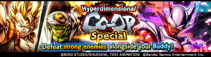 C'est une bataille 4v1 avec votre copain ! Cette fois-ci, en guise de bonus spécial, vous pouvez gagner deux fois le nombre normal de pièces doubles en coopération hyperdimensionnelle et de superbes pièces doubles grâce aux récompenses à durée limitée ! Et si vous gagnez avec le nouveau personnage Pikkon (DBL64-02S) dans votre groupe, vous recevrez encore plus de Dual Coins ! Collectez des médailles doubles et échangez-les contre des récompenses incroyables comme des Chrono Crystals et du Multi-Z Power !