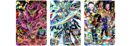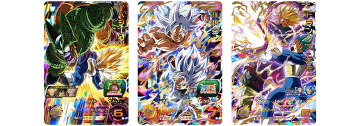 Vient ensuite une carte Cell dotée du "Change Rush" CAA qui lui permet de s'autodétruire et de ressusciter sous sa forme Super Perfect. Enfin, Goku complète la gamme avec une carte au design super élégant et à l'aura impressionnante.