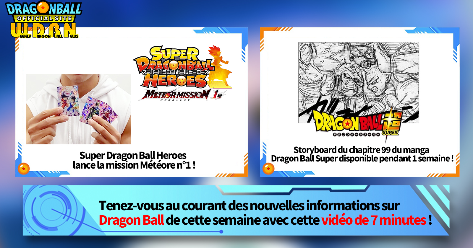 "Nouvelles hebdomadaires Dragon Ball" est une série de vidéos mise à jour tous les lundis (JST) pour vous apporter les dernières nouveautés du monde de Dragon Ball! Rejoignez Victory Uchida, rédacteur en chef de V Jump , qui couvre toutes les informations les plus récentes publiées la semaine précédente ainsi que de nouvelles mises à jour telles que des informations sur les nouveaux produits et les actualités du site pour la semaine à venir !