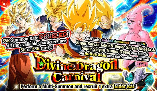 Et comme si cela ne suffisait pas, le Carnaval du Dragon Divin propose des taux d'invocation SSR 2 fois supérieurs à ceux d'un festival Dokkan normal ! Vous obtiendrez même un [Rituel mystérieux] Elder Kai pour chaque invocation multiple que vous effectuez, alors ne manquez pas cette occasion !