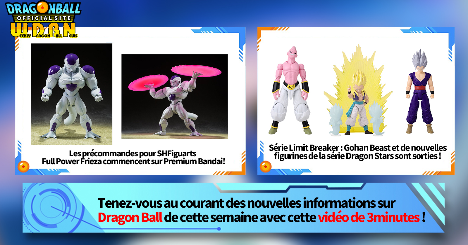 "Nouvelles hebdomadaires Dragon Ball" est une série de vidéos mise à jour tous les lundis (JST) pour vous apporter les dernières nouveautés du monde de Dragon Ball! Rejoignez Victory Uchida, rédacteur en chef de V Jump , qui couvre toutes les informations les plus récentes publiées la semaine précédente ainsi que de nouvelles mises à jour telles que des informations sur les nouveaux produits et les actualités du site pour la semaine à venir !