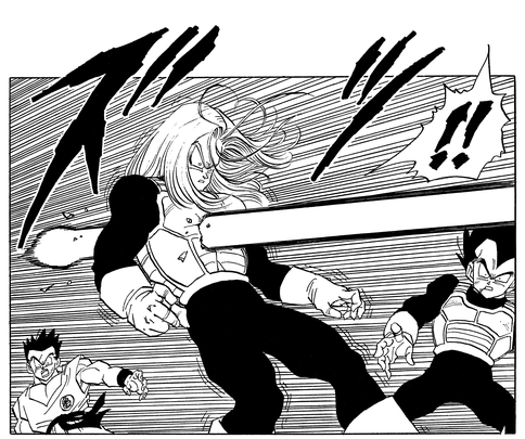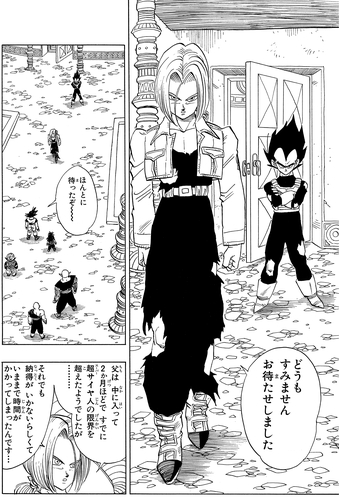 Android 20, qui était un peu dans le pétrin lorsque Vegeta a sorti Android 19, active les androïdes 17 et 18. Trunks se précipite pour aider Vegeta, qui a été acculé par Android 18, mais la situation est ensuite inversée par Android 17.