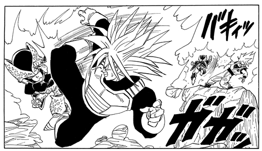 Trunks atteint encore un autre niveau au-delà de Super Saiyan et fait de son mieux contre Cell, mais admet finalement sa défaite lorsqu'il est souligné que la puissance nécessaire pour soutenir cette transformation nécessite tellement d'énergie que cela réduit considérablement sa vitesse.