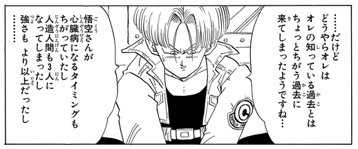 Plus tard, Trunks est informé par Bulma qu'elle a trouvé une vieille machine à voyager dans le temps, et il apprend que quelqu'un y est arrivé il y a environ quatre ans.
